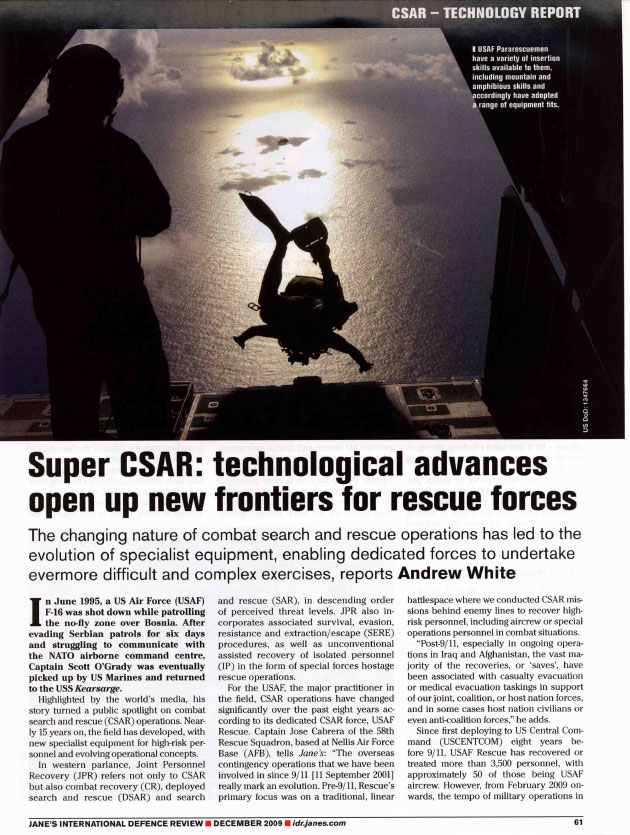 Cejay Engineering Pegasus and Paris CID products were highlighted in the December, 2009 issue of Jane's International Defense Review. The article focus was the technology used in Combat Search And Rescues (CSAR) missions. The following is an excerpt from that article.