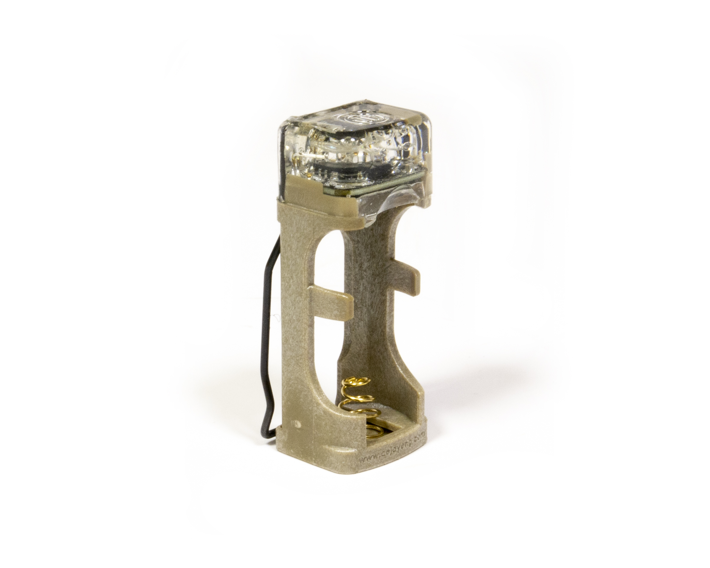 The Phoenix JR.™ 123 beacon was principally designed as an individual Combat Identification marker employed to minimize fratricide (the inadvertent destruction of battle field assets by friendly forces.) It can also be used as a vehicle ID marker, drop zone indicator and perimeter marker. Designed with the same functionality as the Phoenix JR.™ it has been equipped with a spring clip for easy attachment to belts, straps, clothing and equipment. Designed to use a CR123 Battery, the JR123 is 50% smaller and lighter than the Phoenix JR. When not in use, the CR123 battery can be stored within the unit by installing the battery upside-down.