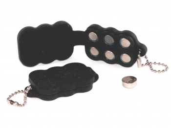 The MK Keychain Battery Carrier (906116) A convenient way to carry and protect up to six (6) spare batteries for all models of MK4 LipLights, MK GloWands, and MK Finger Lights. Made from soft rubber each battery is easily removed from the carrier when needed.