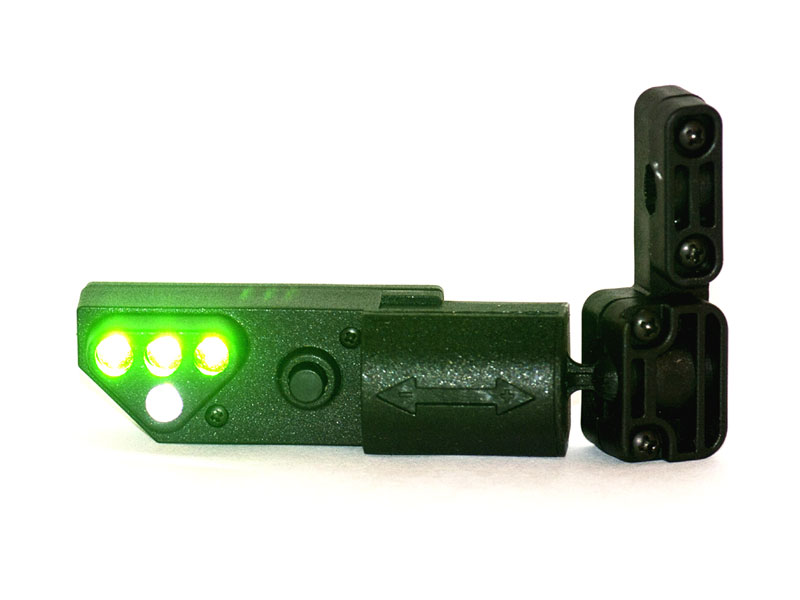 The Mk4 Lip Light is activated by depressing the lip switch on the back of the unit.  The MK 4 features a unique lock-out system to prevent the user from inadvertently activating the light when storing or during tactical operations and an adjustable “auto-off” function to maximize battery life.  The MK4 Lip Light is available with either a Standard (904220) or Soft Touch (904219) lip switch.  The Soft Touch lip switch is suitable for easily bent flex booms such as those booms supplied with Bose©, and MSA Sordin© Headsets.