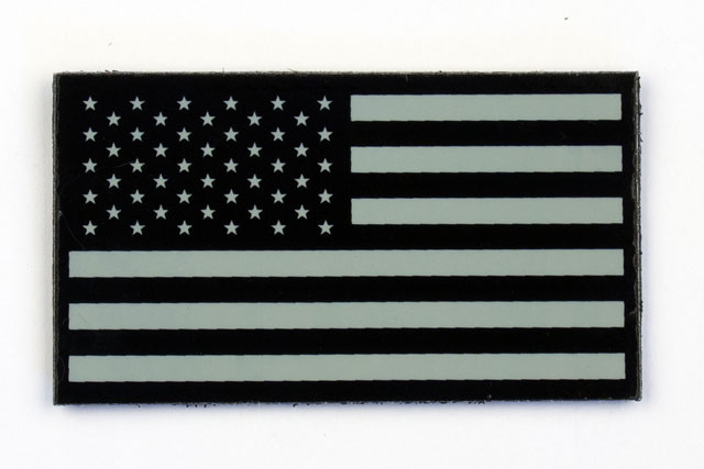 Warrior GloTape Subdued Infrared (IR) Reflective Flags are manufactured from specially-formulated material that only reflects infrared (IR) wavelengths when illuminated by light sources such as targeting lasers. When viewed with military night vision IR systems, the reflected IR light provides a simple marking method that identifies friendly persons to team members at distances up to 800 meters. Flags are 2” x 3.5” and available with Velcro hook or peel-and-stick backing. Full color Red, White and Blue American flags reflect both IR and visible light.